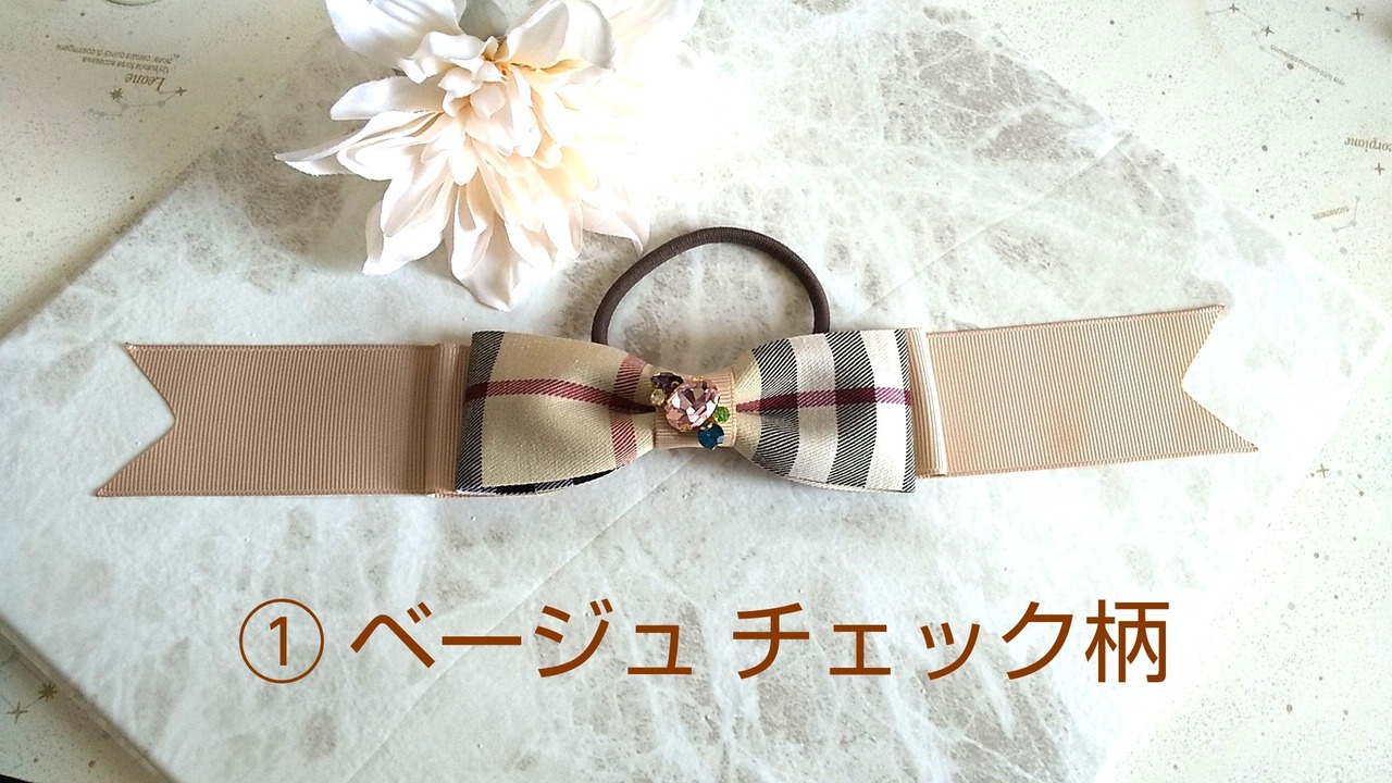 【ヘアゴム】ひらりんロングリボン ビジュー 付き