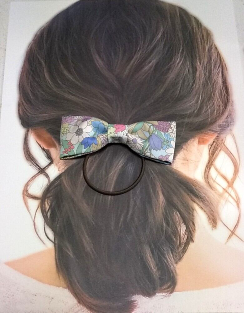 前髪を小さいリボンで留めて、更に後ろを大きいリボンで留めて…