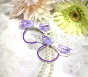 パープルの細目サテンリボンを合わせました。