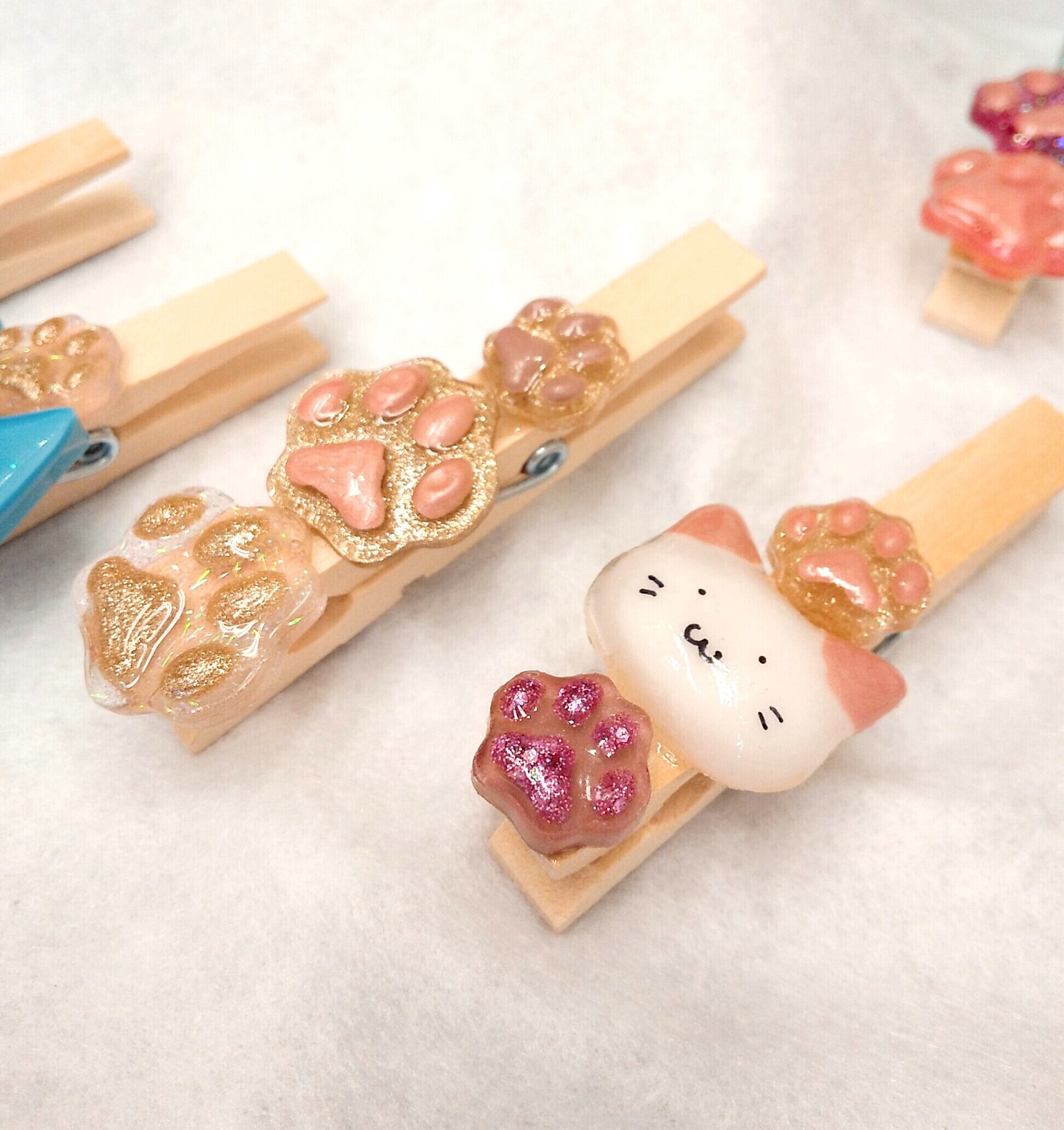 【文房具】猫と足跡のウッドクリップ 2本セット