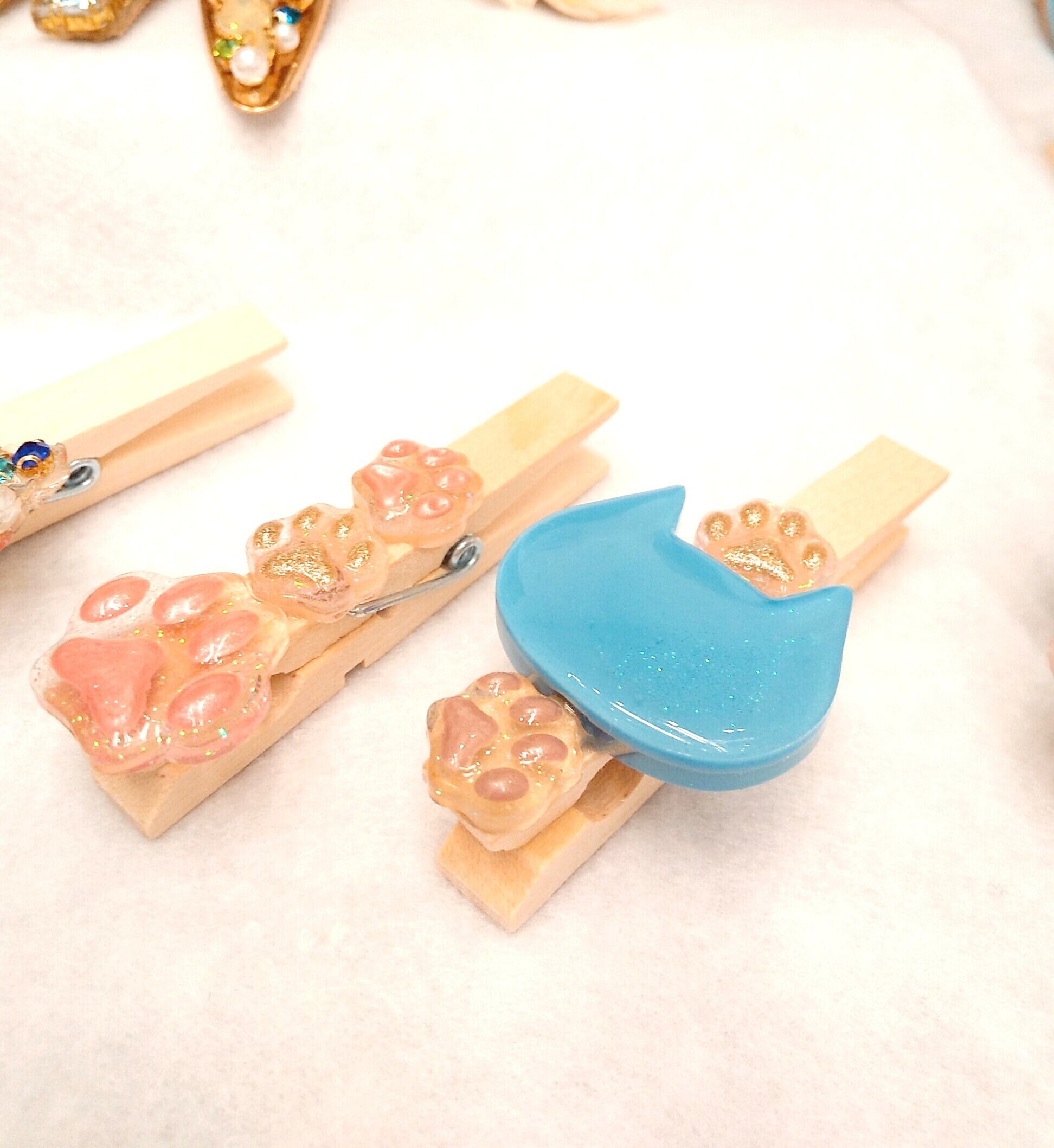 【文房具】青猫と足跡のウッドクリップ 2本セット